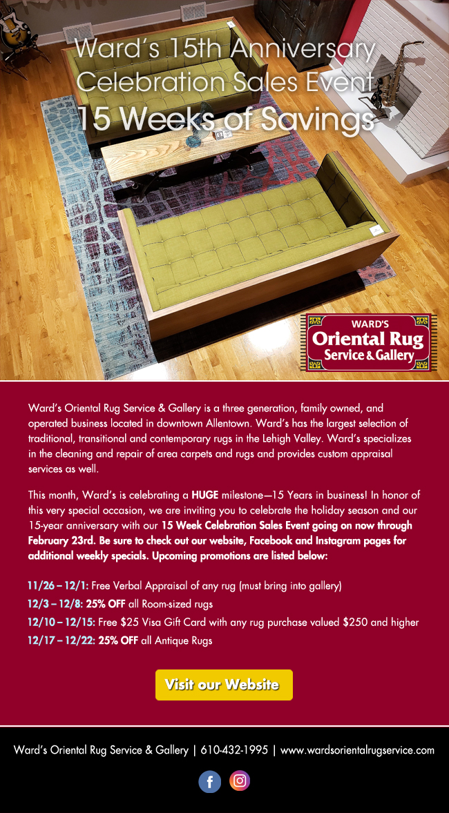‘Ward’s Oriental Rug Services & Gallery 15th Anniversary Sales Event’, 2018